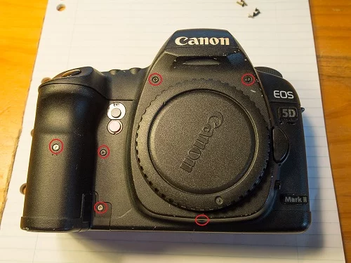 Canon 5D Mark II 부품 카탈로그 (Google에서 확인할 수 있음)는이 가이드를 읽는 동안 참조 할 수 있습니다.